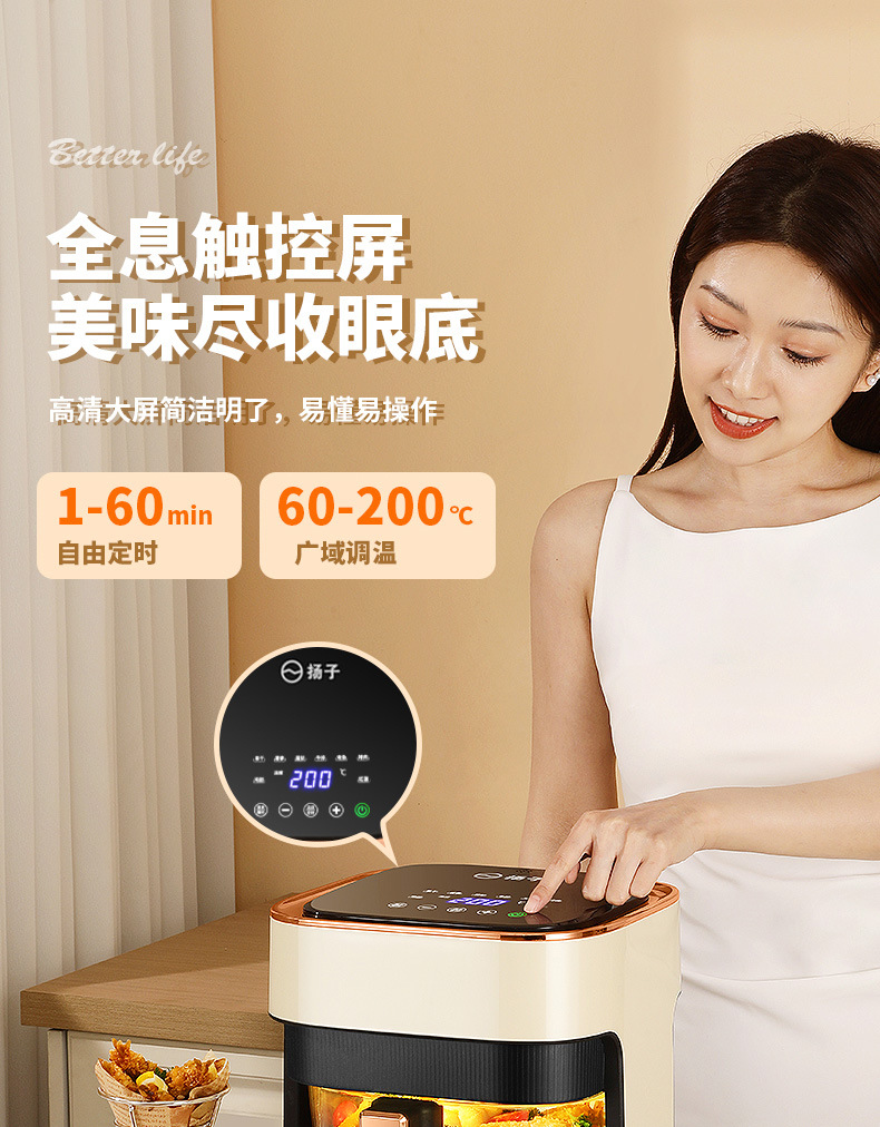 Binding Yangzi Air Fryer Multi-Functional Air Fryer Visual Air Fryer Household Electric Fryer Intelligent Wholesale