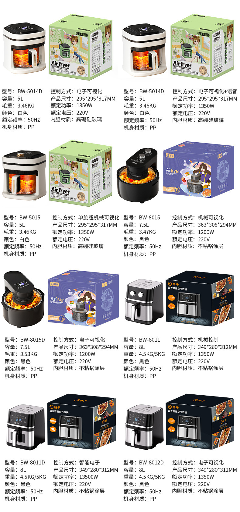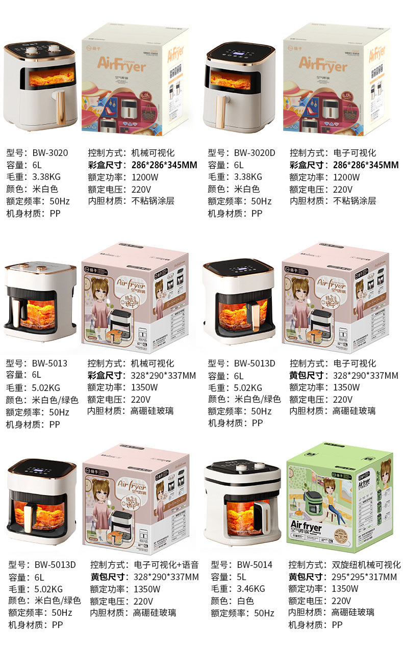 4L green single knob fryer | 4L yellow single knob fryer | 4.5L upper visual series fryer | 5 liter red series fryer | 5L glass series fryer | 6L white series fryer | 6L green up-view series fryer | 6L white overhead series fryer | 6L glass series fryer | 7.5L Top visual series fryer | 7.5L Deep Fryer with Top and Bottom Clamshell (Black)